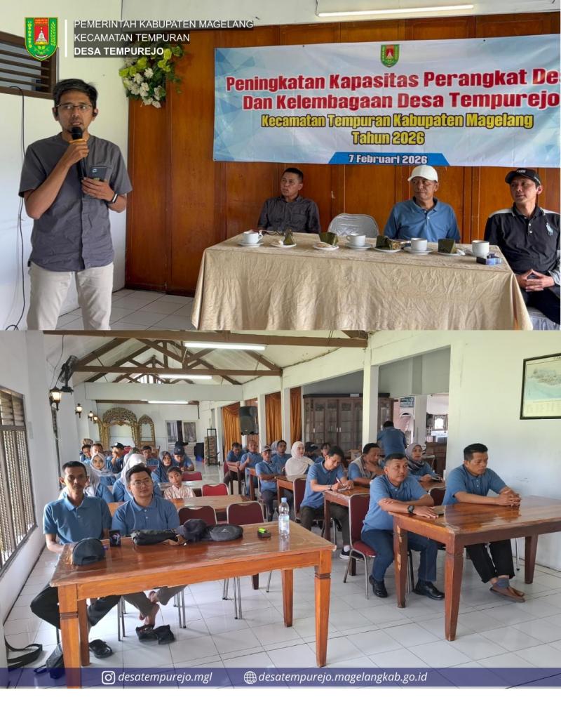 Pemerintah Desa Tempurejo menggelar kegiatan Peningkatan Kapasitas Perangkat Desa dan Lembaga Desa, sebuah langkah strategis untuk memastikan roda pemerintahan berjalan semakin profesional dan efisien. Kegiatan yang berlangsung intensif tersebut dihadiri langsung oleh Kasi Tata Pemerintahan Kecamatan Tempuran. Tak ketinggalan, Pendamping Desa (PD) dan Pendamping Lokal Desa (PLD) Kecamatan Tempuran turun tangan untuk memberikan penguatan dan arahan langsung kepada para perangkat desa.